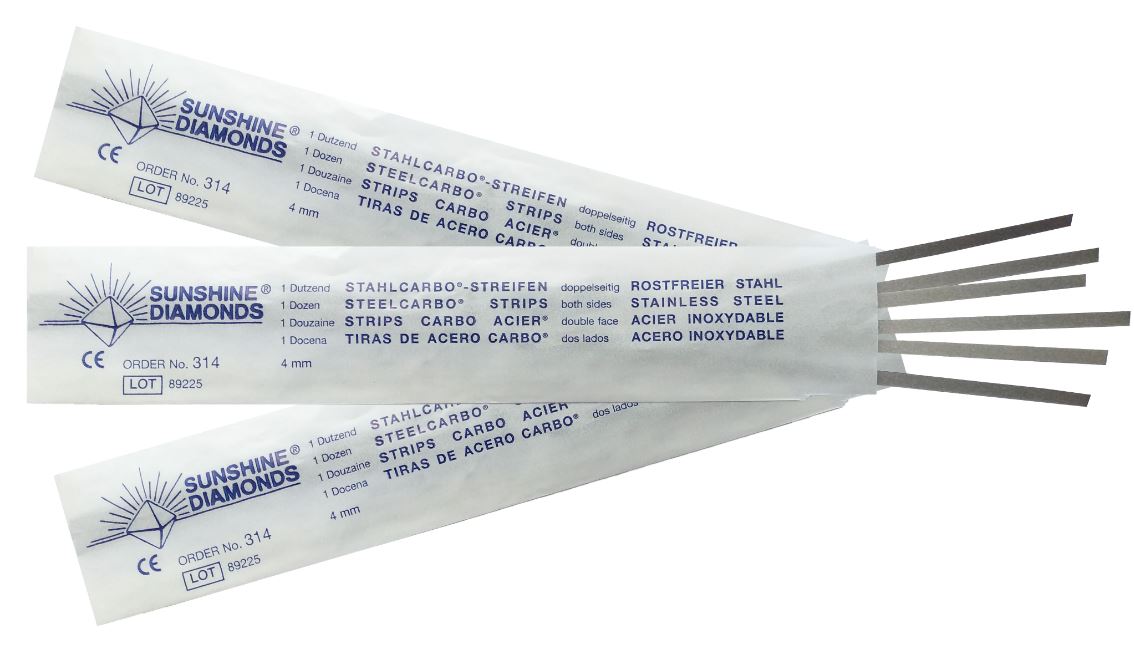 Wir können behaupten, dass 80% der Streifen weltweit bei Kieferorthopäden, Zahnkliniken und Laboren aus unserer Produktion in Langenhagen bei Hannover stammen. Unsere Streifen sind zu 100% Made in Germany und unter der Marke SUNSHINE© sowie als OEM erhältlich. Stahlcarbo®-Streifen |